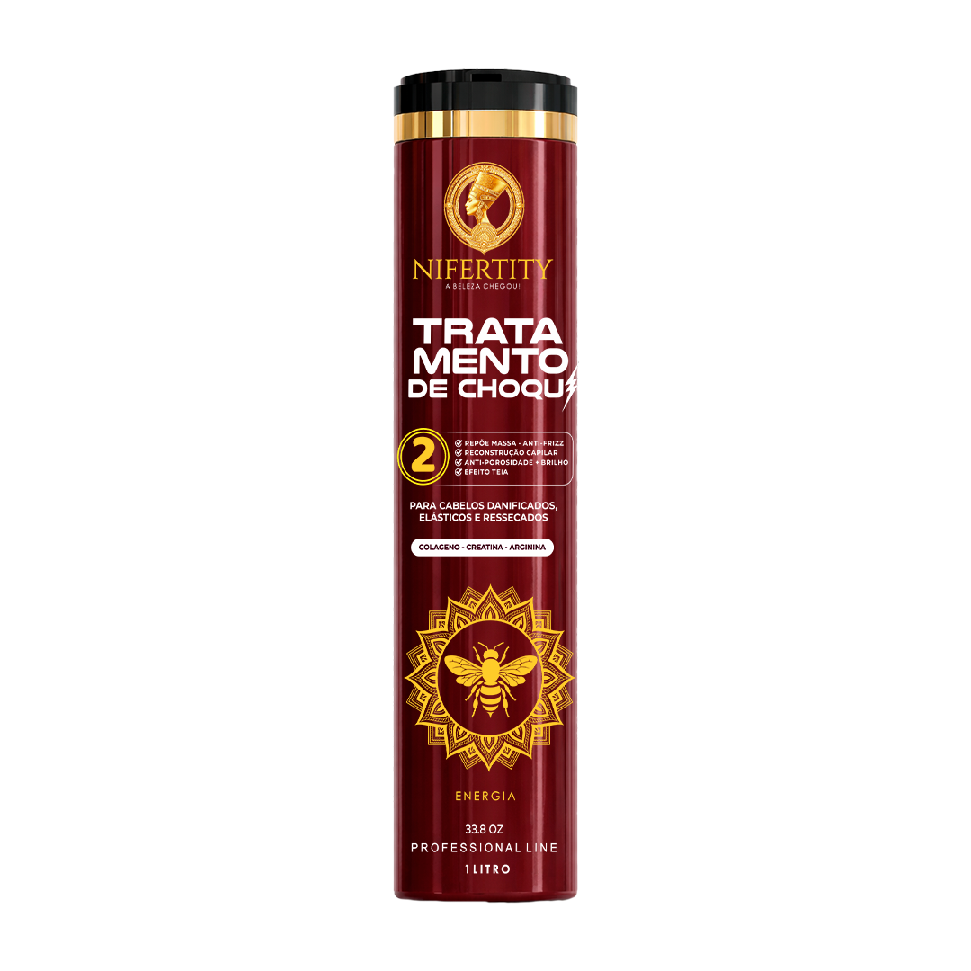 Tratamento de Choque Egypcia Repõe a massa, recupera a fibra capilar e sela as cutículas. Rica em proteínas do trigo, queratina, arroz, colágeno, creatina e arginina, reduz a porosidade, diminui as pontas duplas e aumenta resistência dos fios.